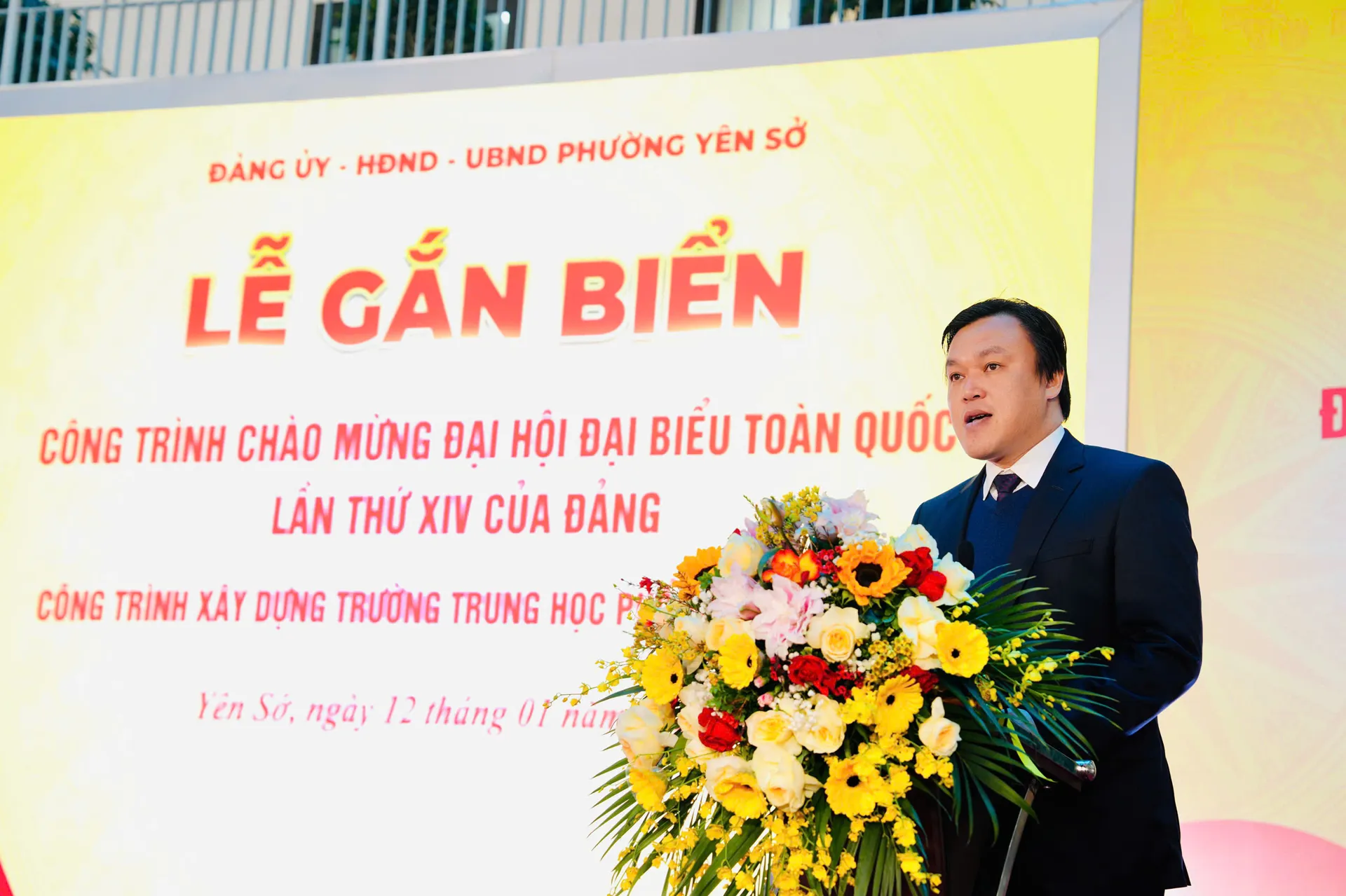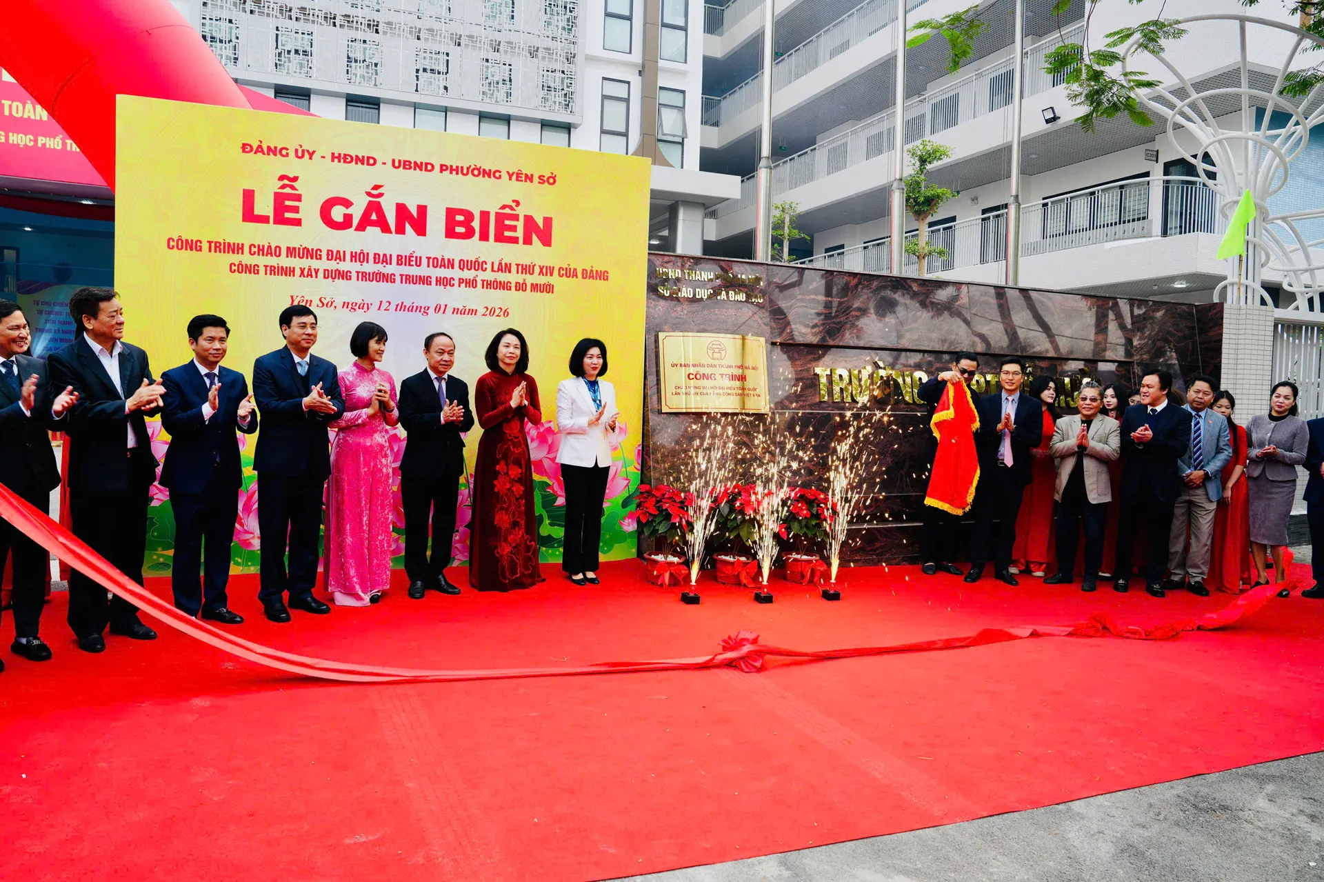 Sáng 12/1, phường Yên Sở (Hà Nội) tổ chức Lễ gắn biển Công trình chào mừng Đại hội đại biểu toàn quốc lần thứ XVI của Đảng đối với công trình xây dựng Trường trung học phổ thông Đỗ Mười.